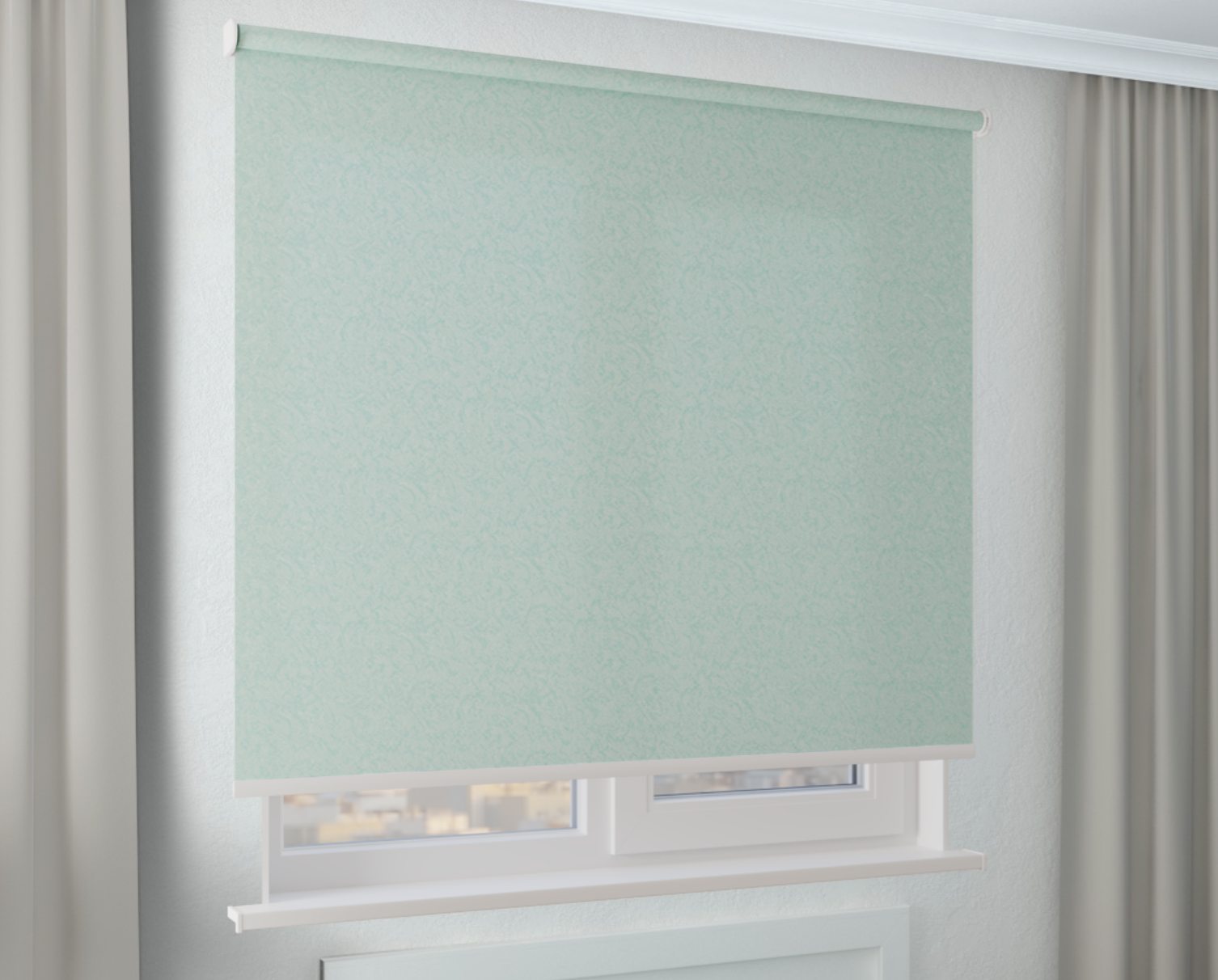 Рулонная штора AMG ШЁЛК бирюзовая - стильно, практично, защита от солнца. Монтаж без сверления, простой уход, гипоаллергенная.