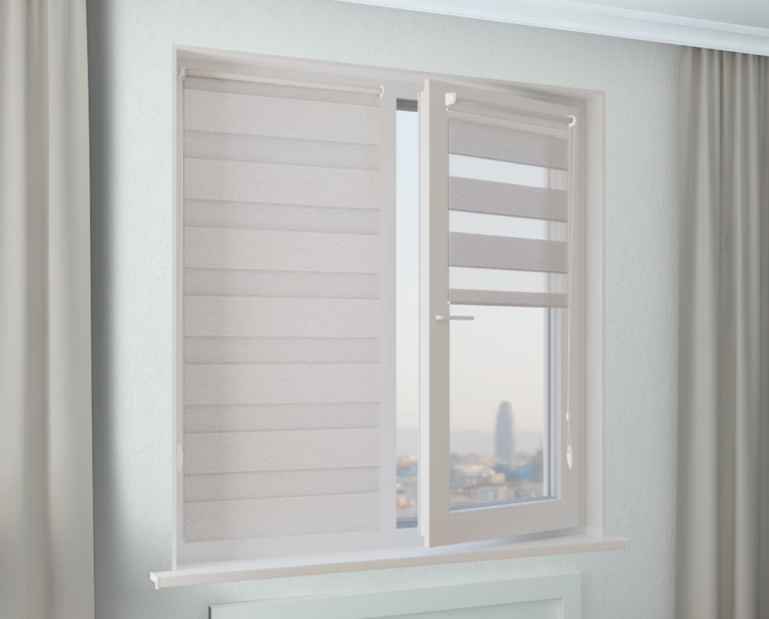 Рулонная штора Зебра МИНИ ГЛОРИЯ БИО BLACK-OUT светло-серый - стильная, практичная и функциональная защита от солнечных лучей.