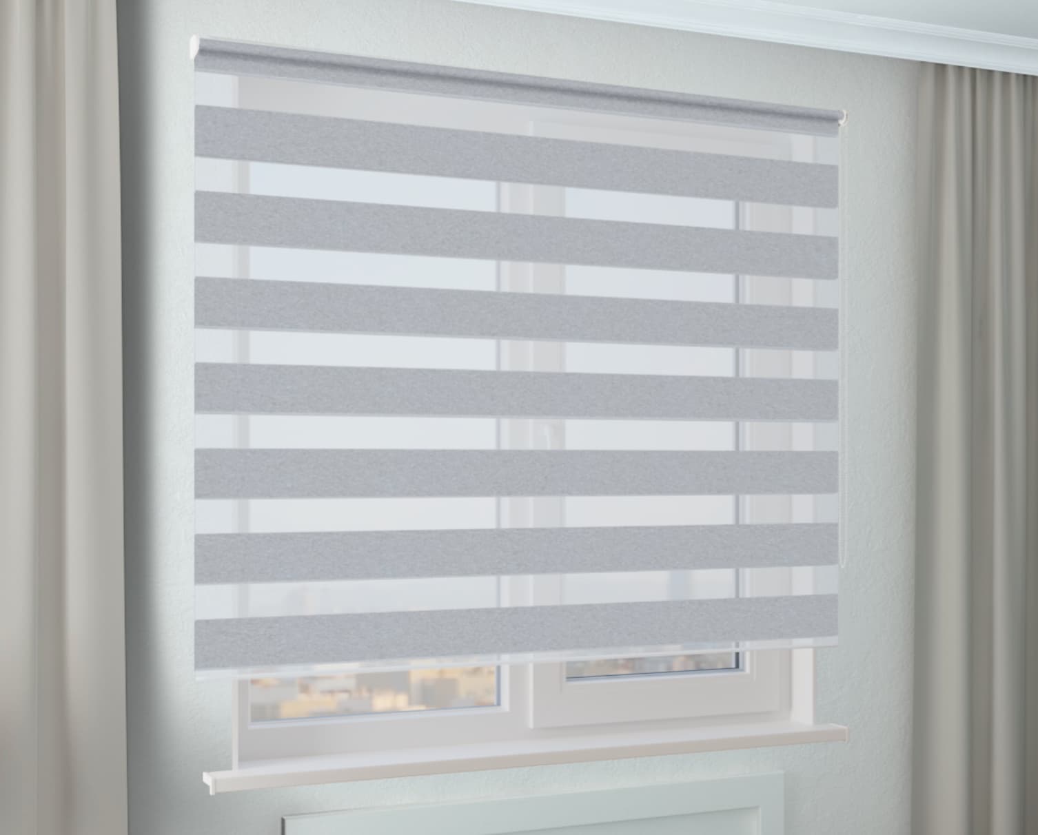Рулонная штора Зебра Стандарт ГЛОРИЯ БИО BLACK-OUT светло-серый - идеальное сочетание стиля, практичности и функциональности.