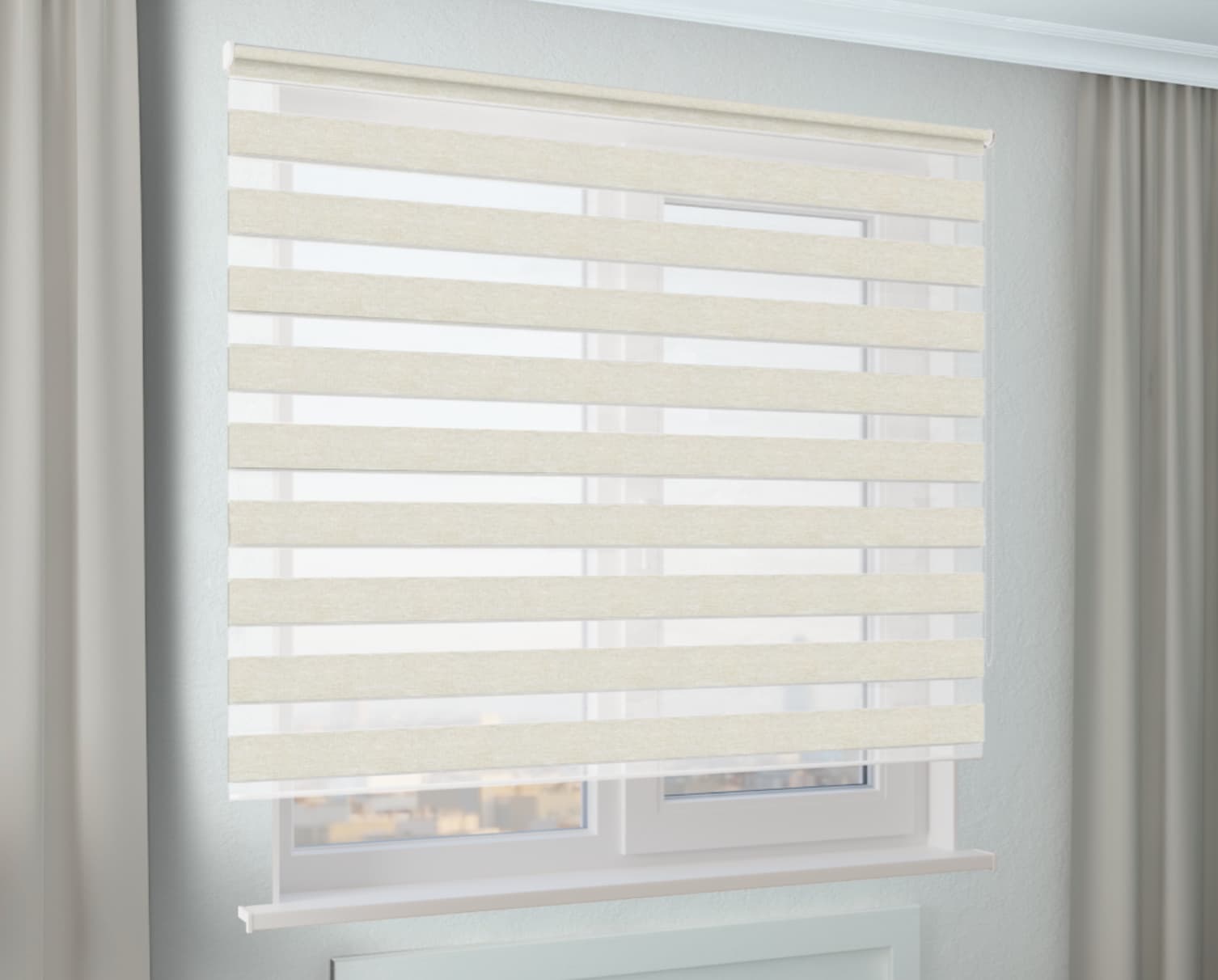 Рулонная штора Зебра Стандарт САХАРА магнолия - стильная, практичная и функциональная защита от солнечных лучей. Монтаж без сверления, легкий уход, гипоаллергенная и долговечная.