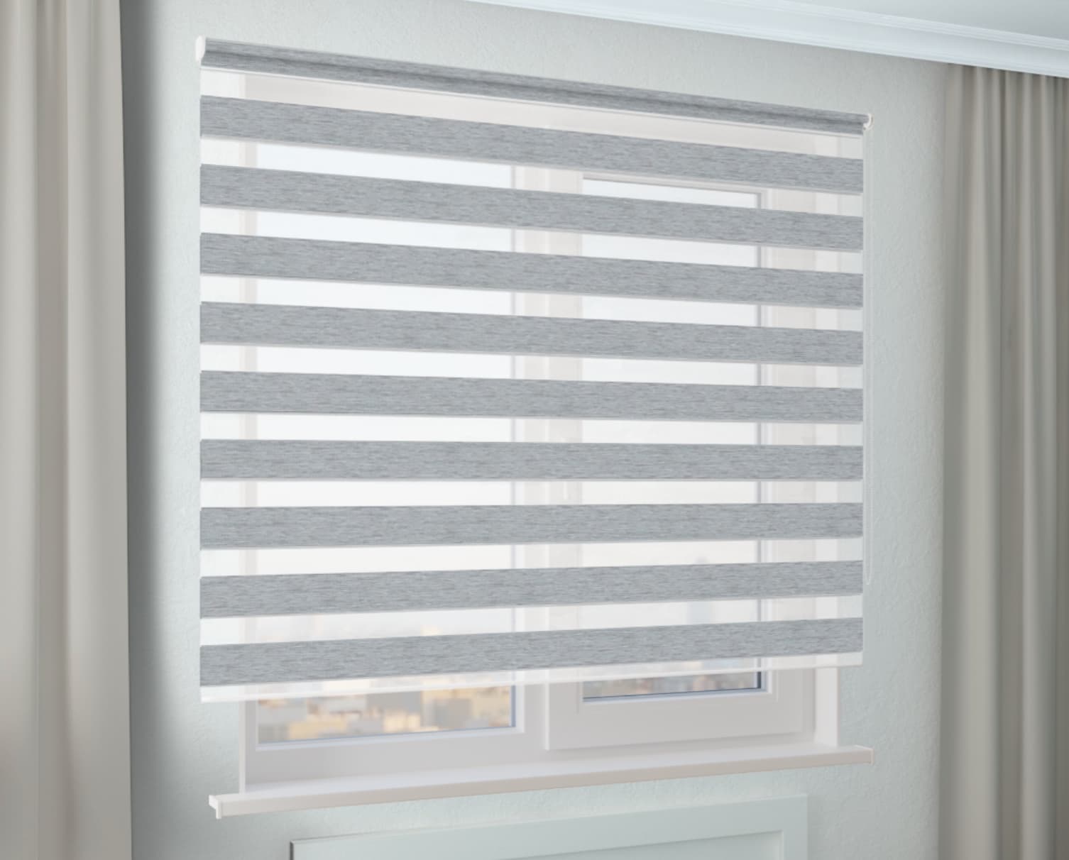 Элегантная рулонная штора Зебра Стандарт САХАРА серого цвета, идеально дополнит интерьер вашего дома. Функциональная, стильная и практичная!