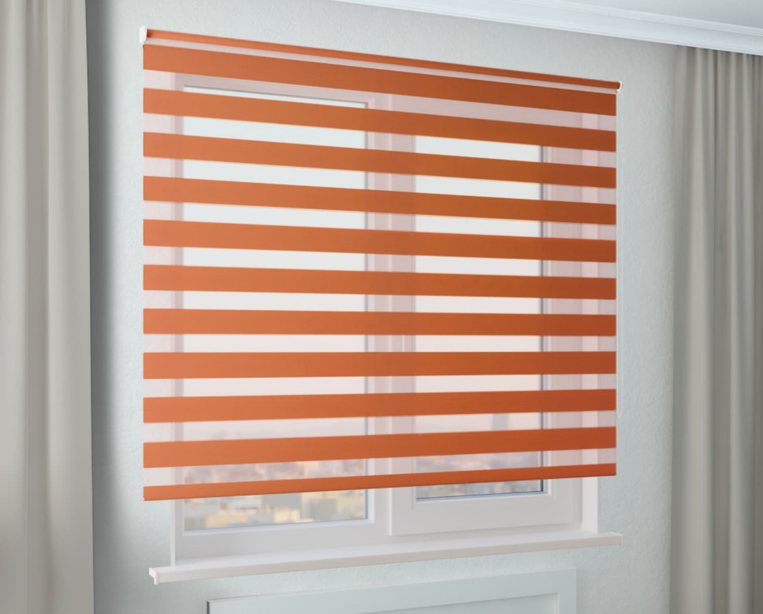 Зебра Стандарт оранжевая - стильная и практичная рулонная штора, сочетающая в себе функциональность и эстетичность. Защитит от солнечных лучей, легко монтируется без сверления, проста в уходе и долговечна. Бесплатный замер и доставка, гарантия 1 год.
