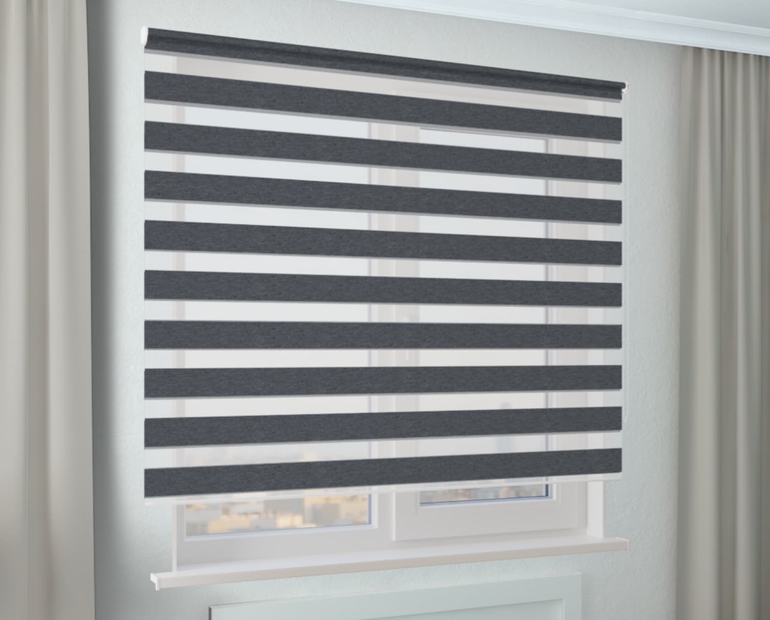 Рулонная штора Зебра Стандарт СТОУН БИО графит - функциональное решение для защиты от солнечных лучей. Красивое, практичное и эстетичное решение для вашего интерьера.