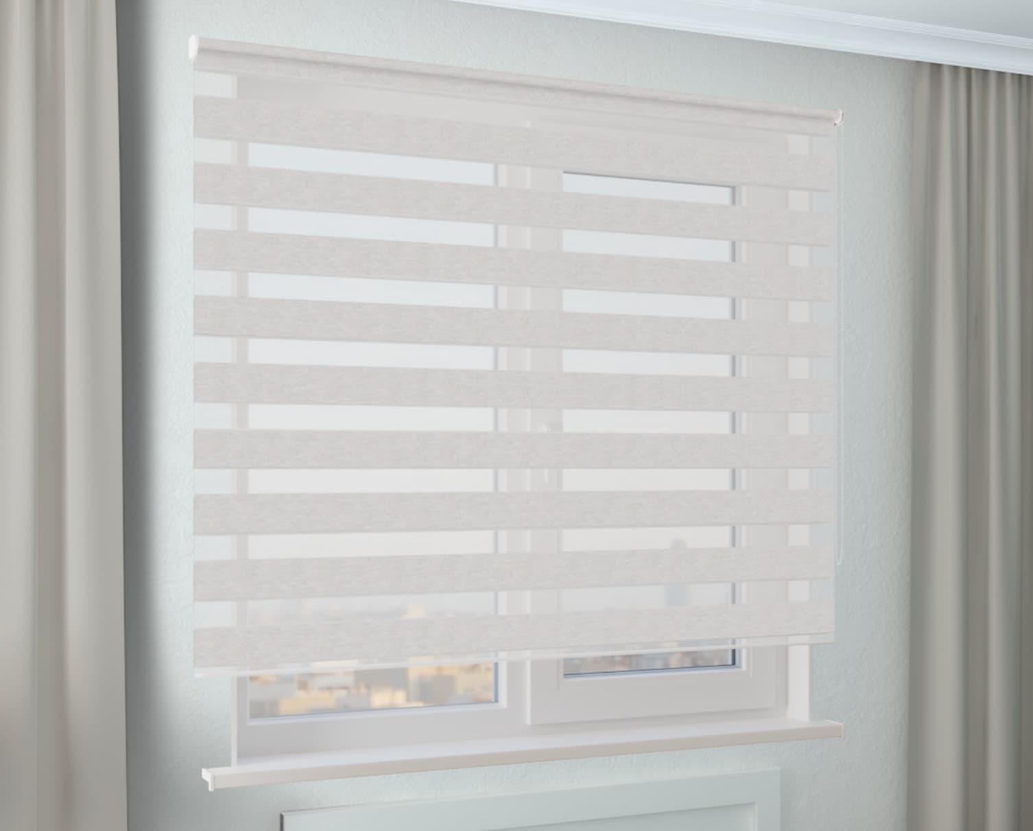 Рулонная штора Зебра Стандарт СТОУН БИО магнолия - стильно и практично! Защита от солнечных лучей, монтаж без сверления, простой уход. Гарантия 1 год.