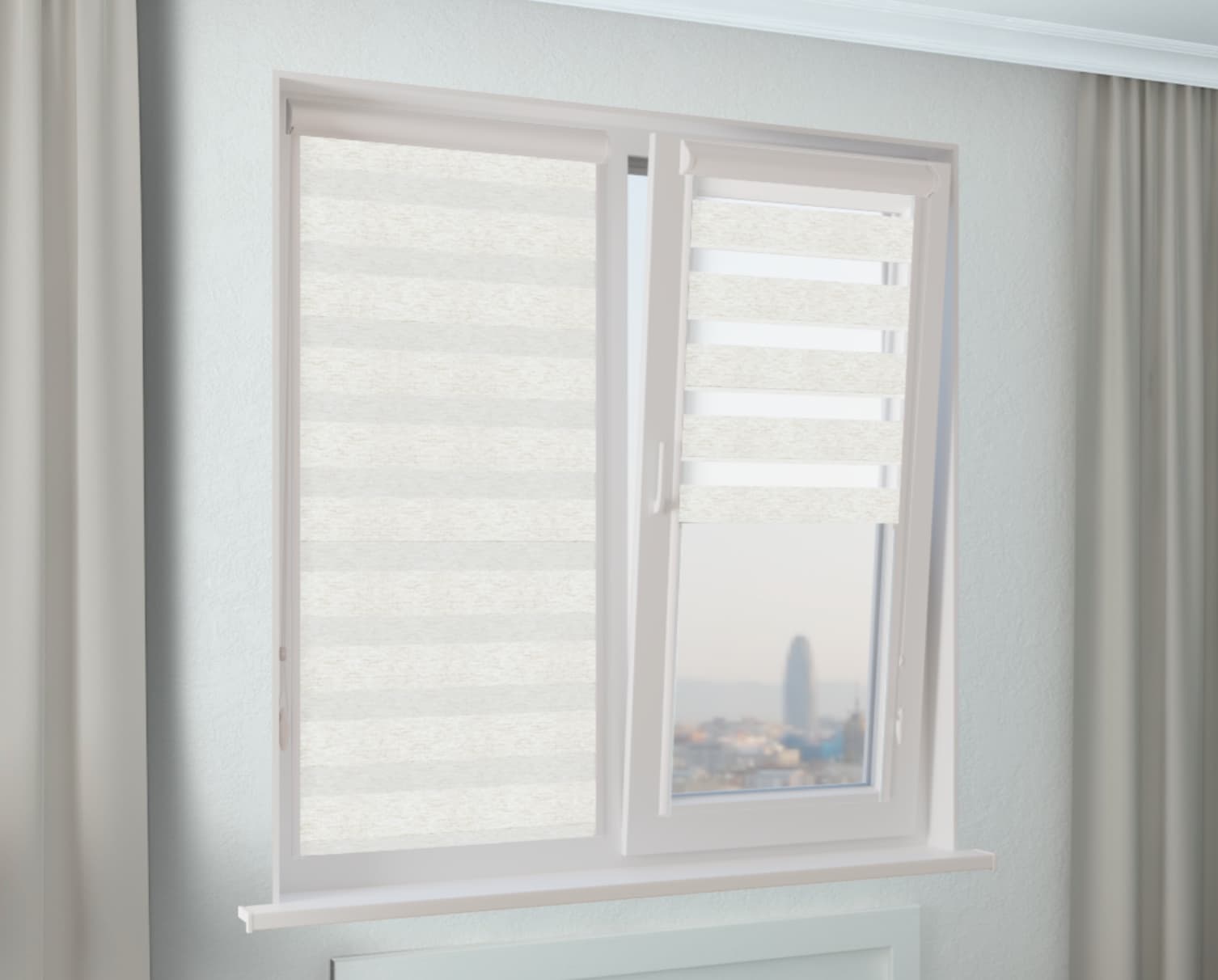 Зебра УНИ-1 САХАРА белый лён - стильное и практичное решение для защиты от солнечных лучей. Уникальная дизайнерская штора день-ночь, которая гармонично впишется в интерьер вашего дома.