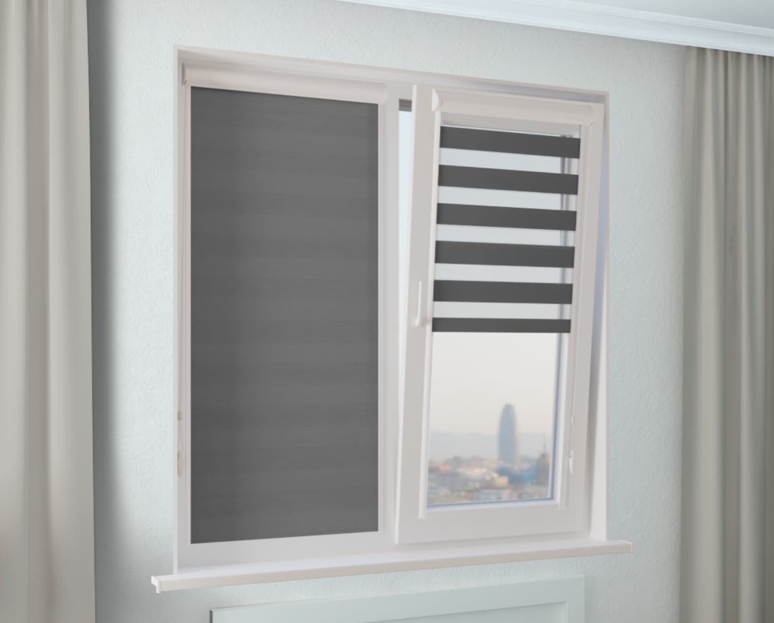 Зебра рулонная штора УНИ-1 СТАНДАРТ темно-серый - стильное и практичное решение для вашего окна.