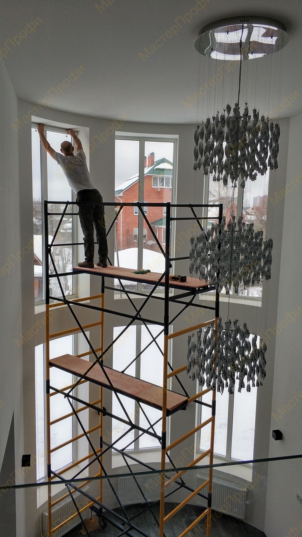 Монтаж рулонных штор на высоте
